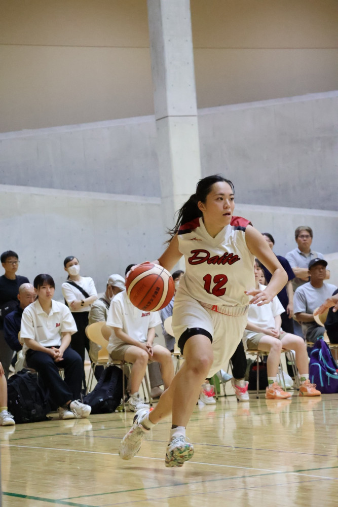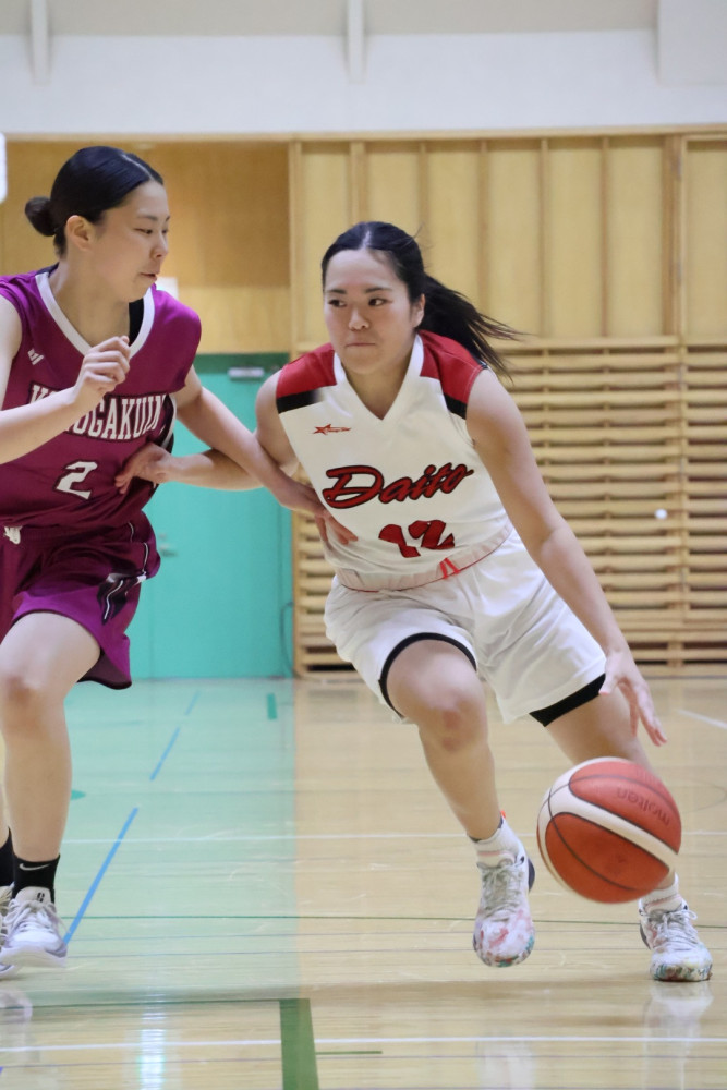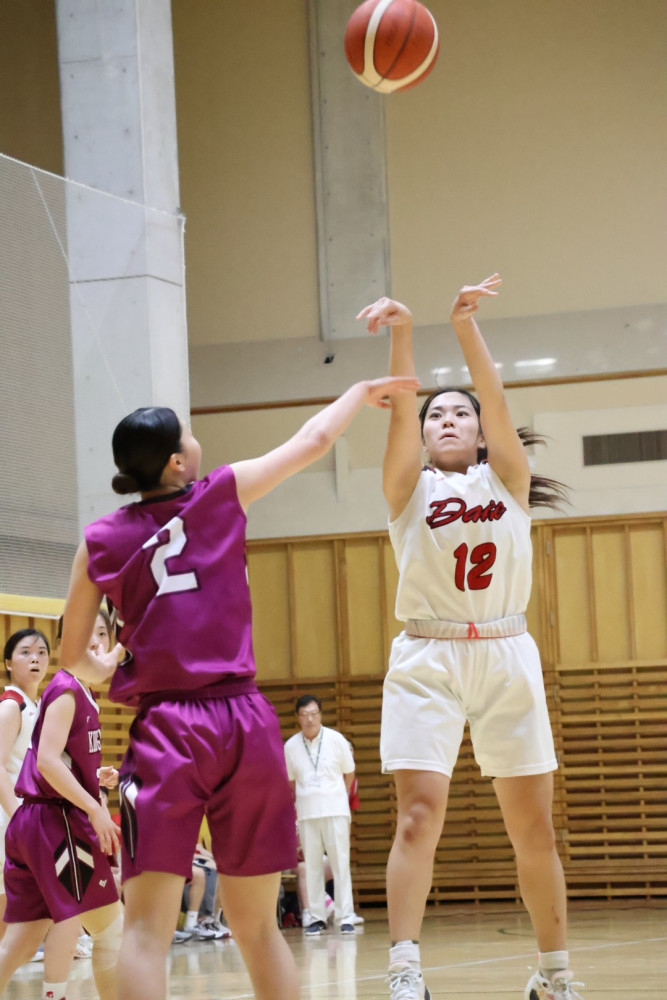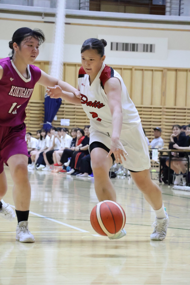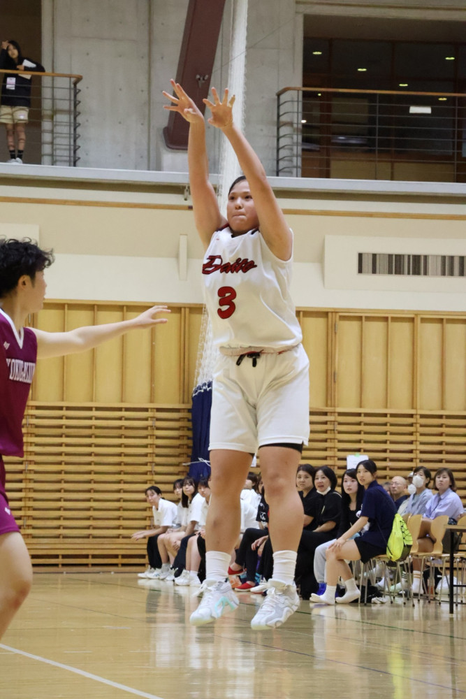 後半の第3Qは、國學大にパスカットを許したり、インサイドを攻め込まれたりする場面が続いた。しかし相手のシュートがなかなか決まらず、大東大はオフェンスリバウンド・ディフェンスリバウンドの両面で優位に立ち、得点差を詰めさせない。40-35と5点リードを保ち、最終第4Qへ突入した。