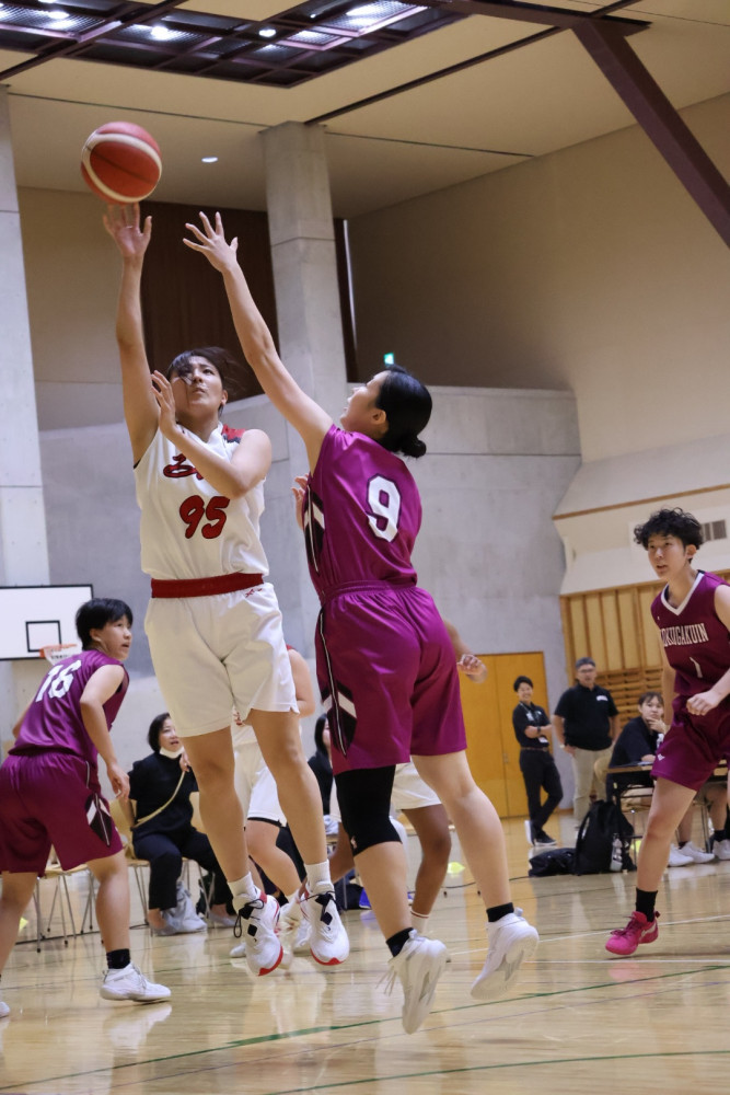 第4Qは、#95遠藤亜美や#25田中美紗のインサイドを軸に、合わせやポストプレーで着実に得点を重ねる。その後も主導権を渡さずリードを守り切り、最終スコア58-49で勝利を収めた。