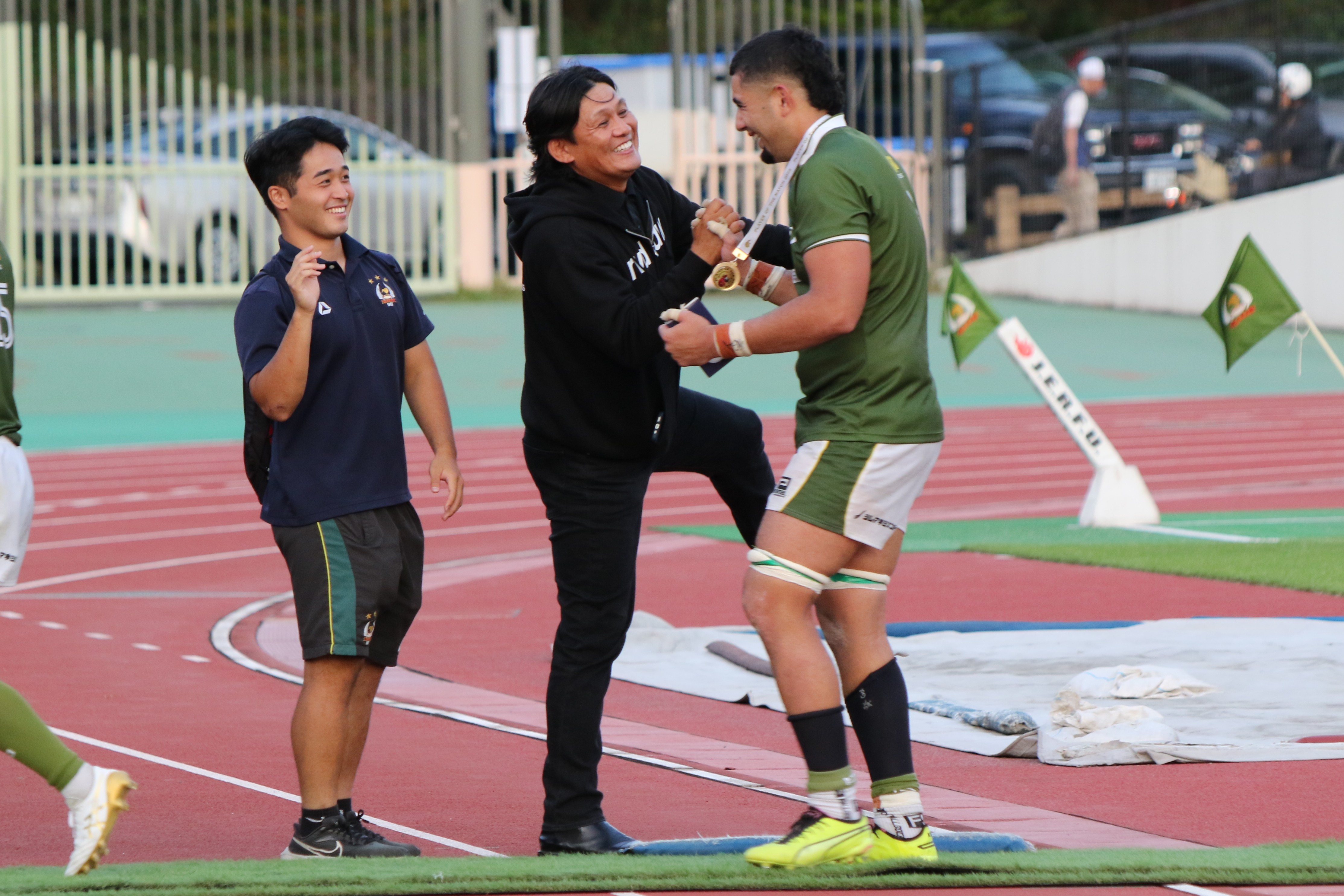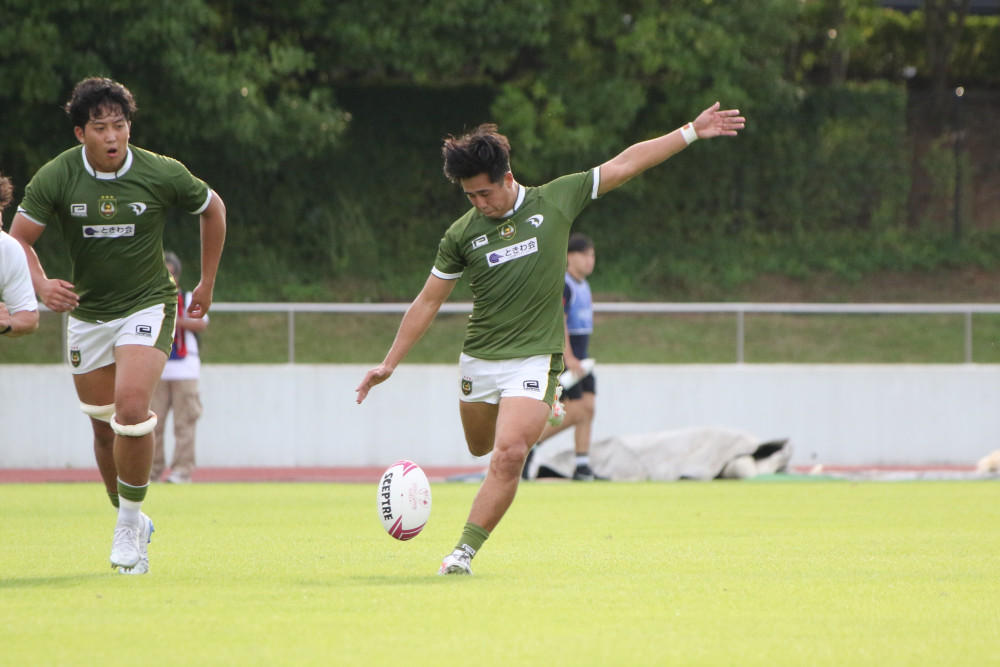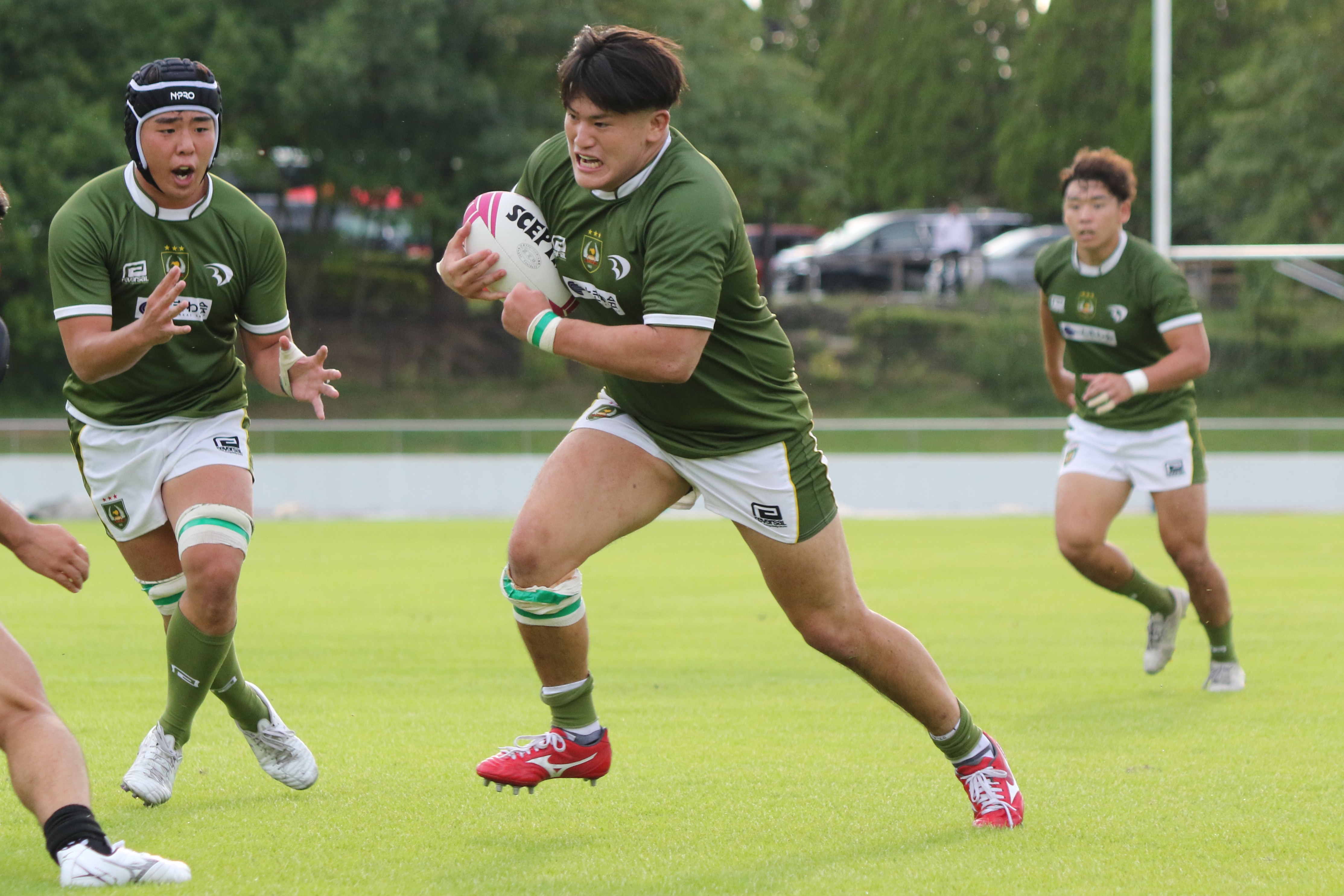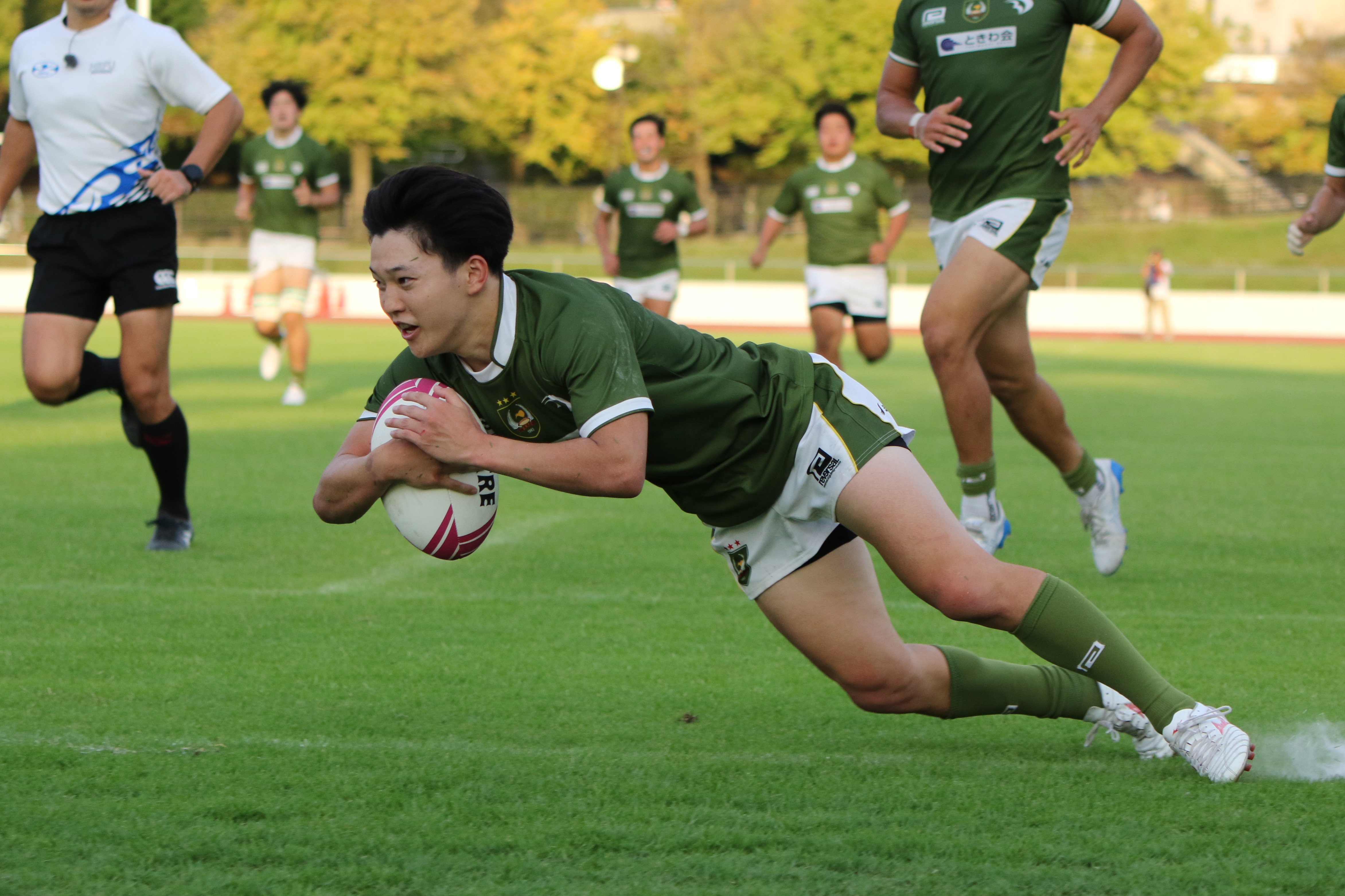 大東大の追撃は続き、WTB大方維織(経営2=青森山田)が得意のステップでラインブレイク。オフロードパスを繋ぎ、NO.8トファエオノからリターンパスをもらったWTB大方がインゴールに飛び込んだ。スコアを40-31で1トライ1ゴールでは追いつけない点差にする。その後ペナルティーゴールを決められるも6点差を守りぬき勝利を収めた。