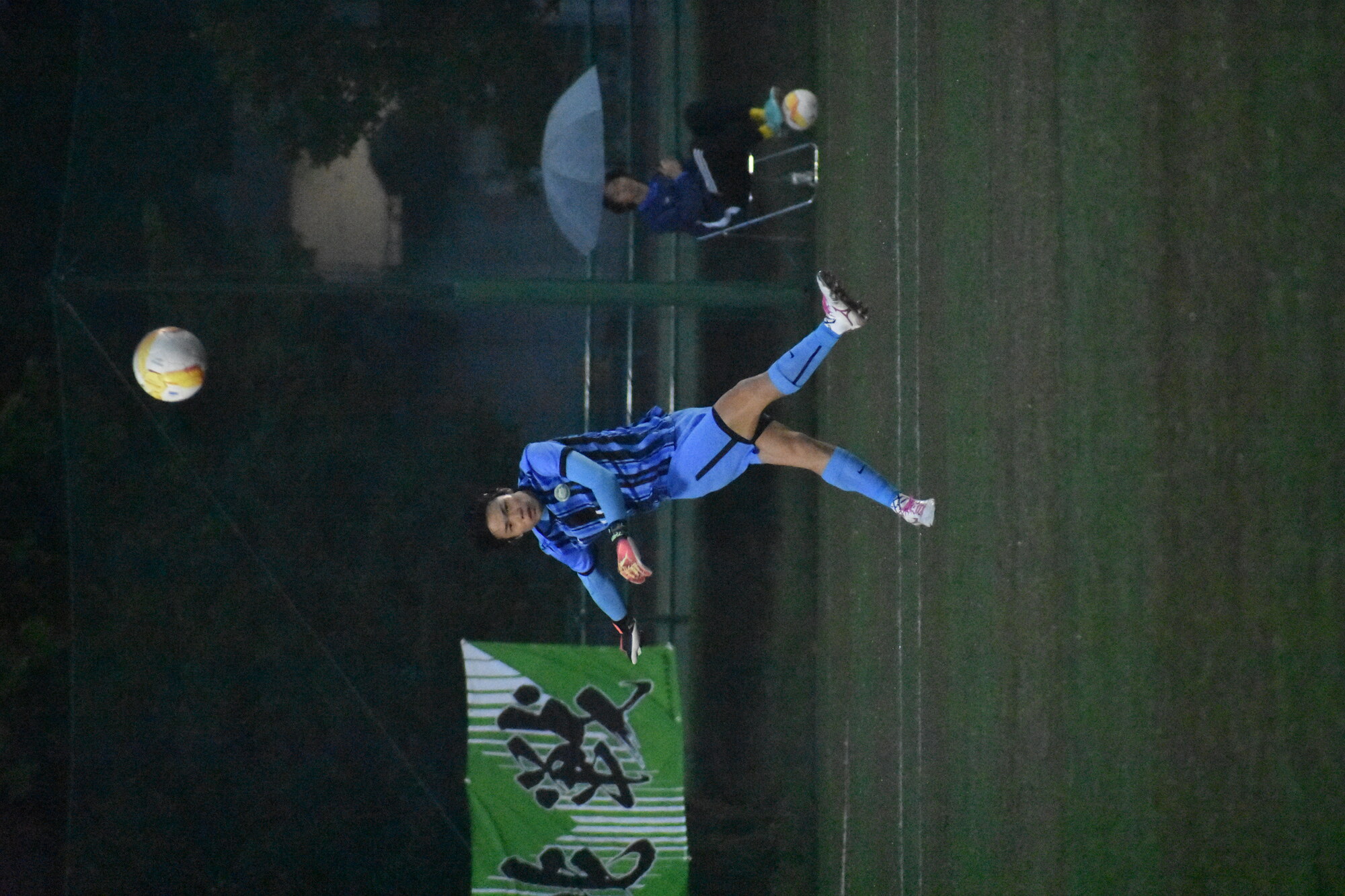 反対に、34分GKからのゴールキックが7番まで渡りシュートを打たれるもラインギリギリで佐藤晴翔(スポ科1)がキャッチしようと前に出るもわずかにボールが出て難を逃れる。