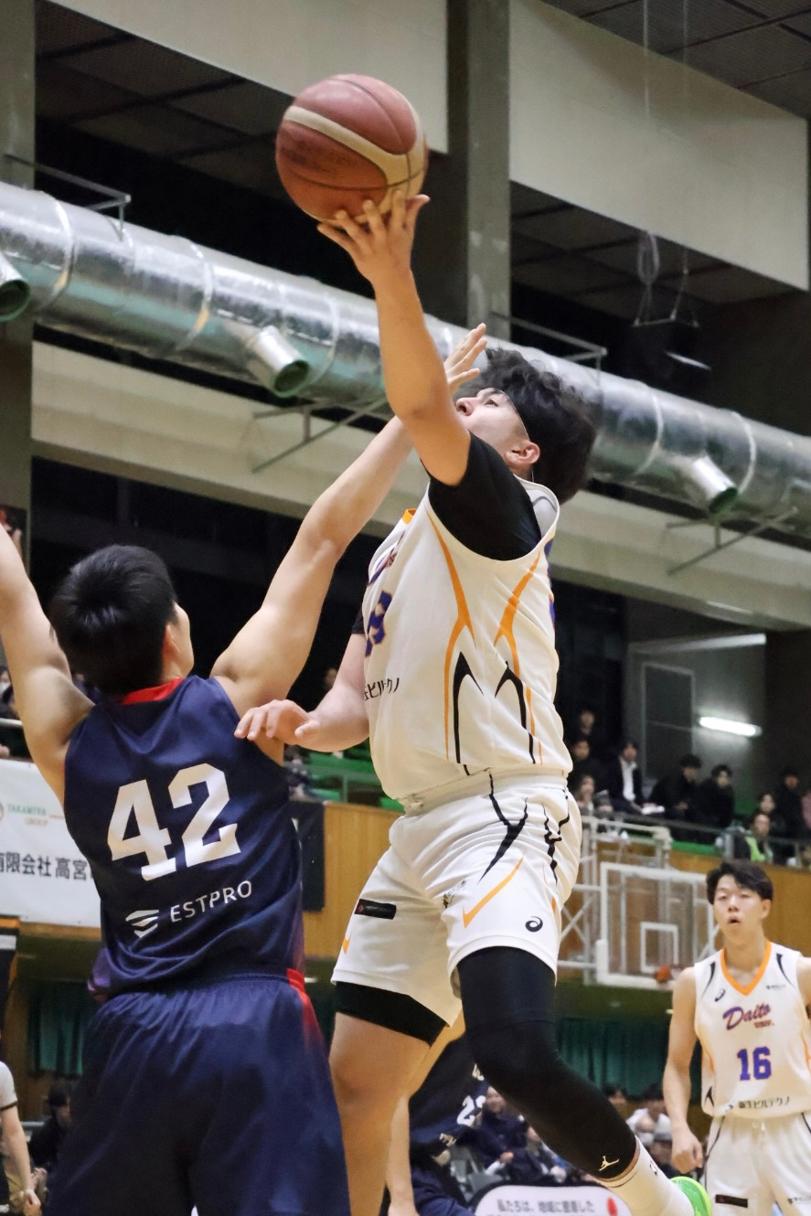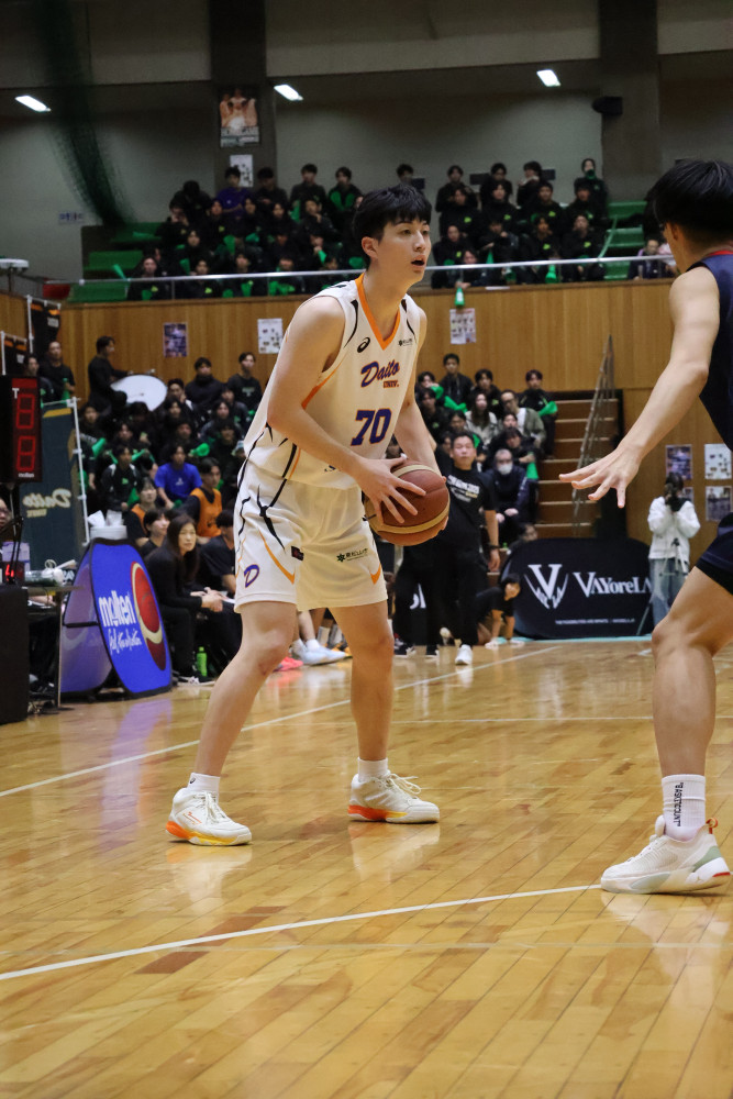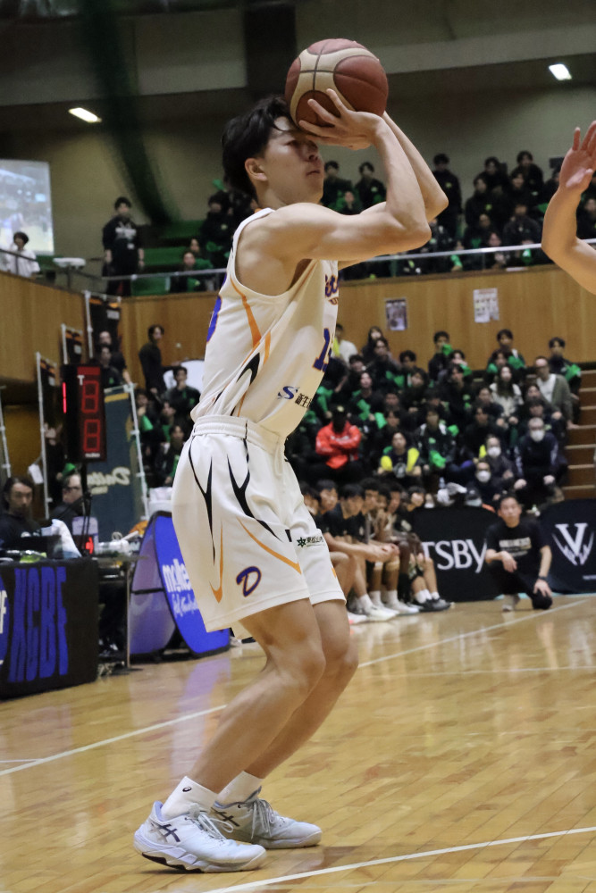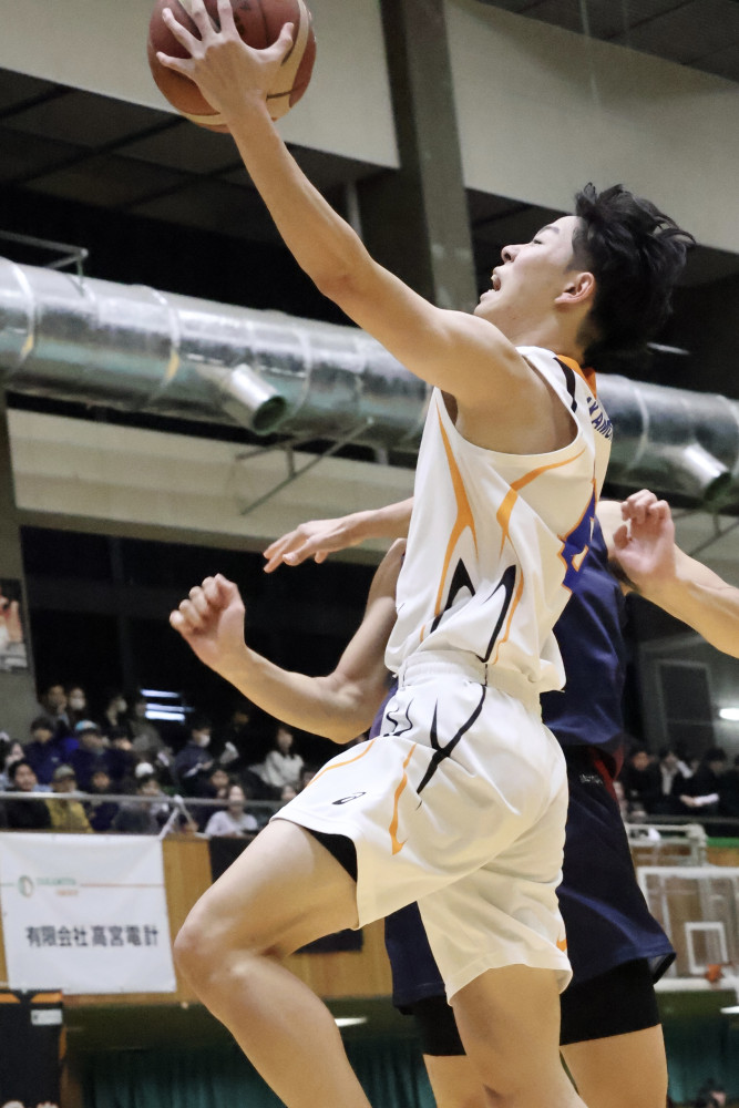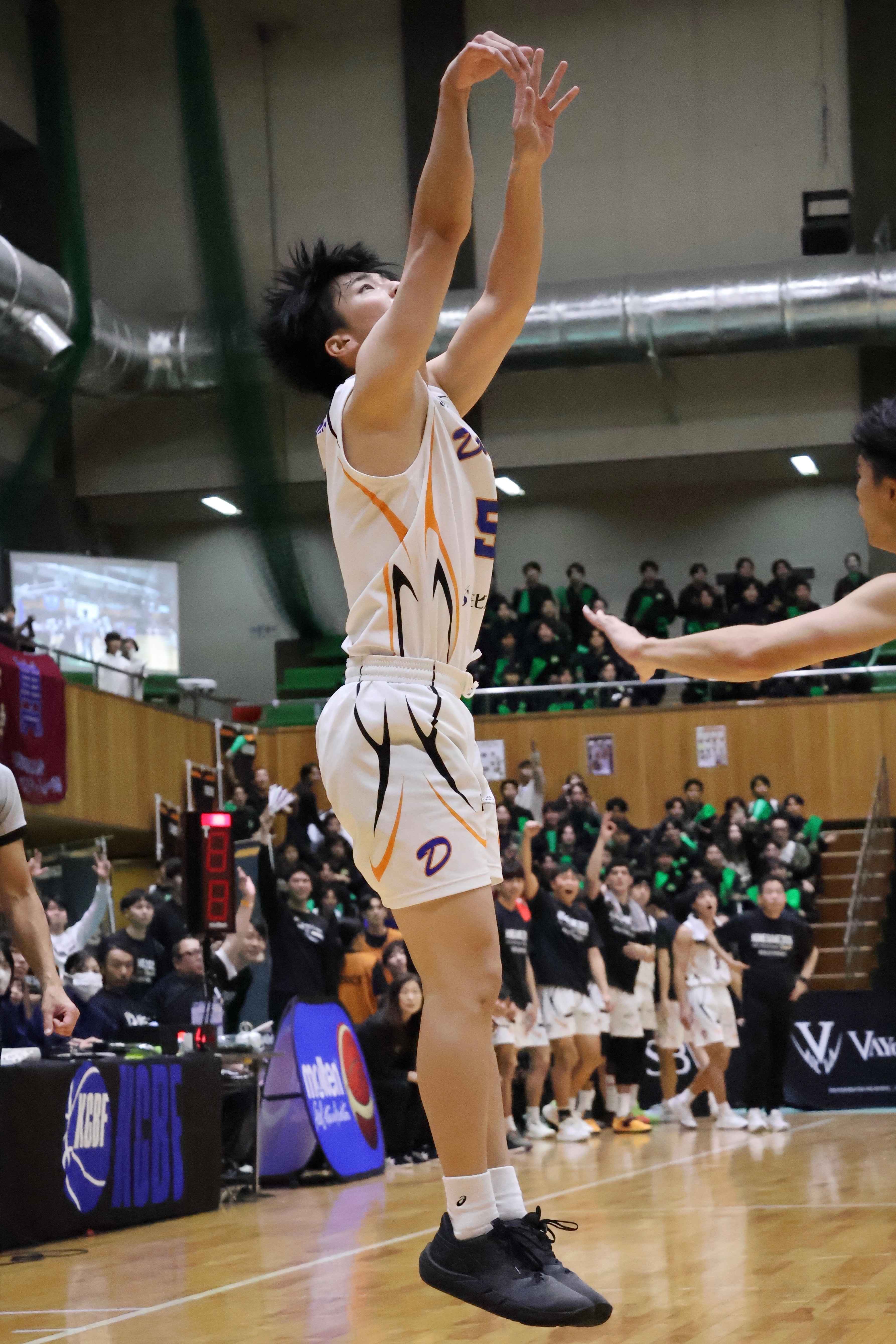 第2Q、廣岡大翔(4)のスリーポイントが決まる。点数が止まる時間も、ディフェンスを粘り続ける。