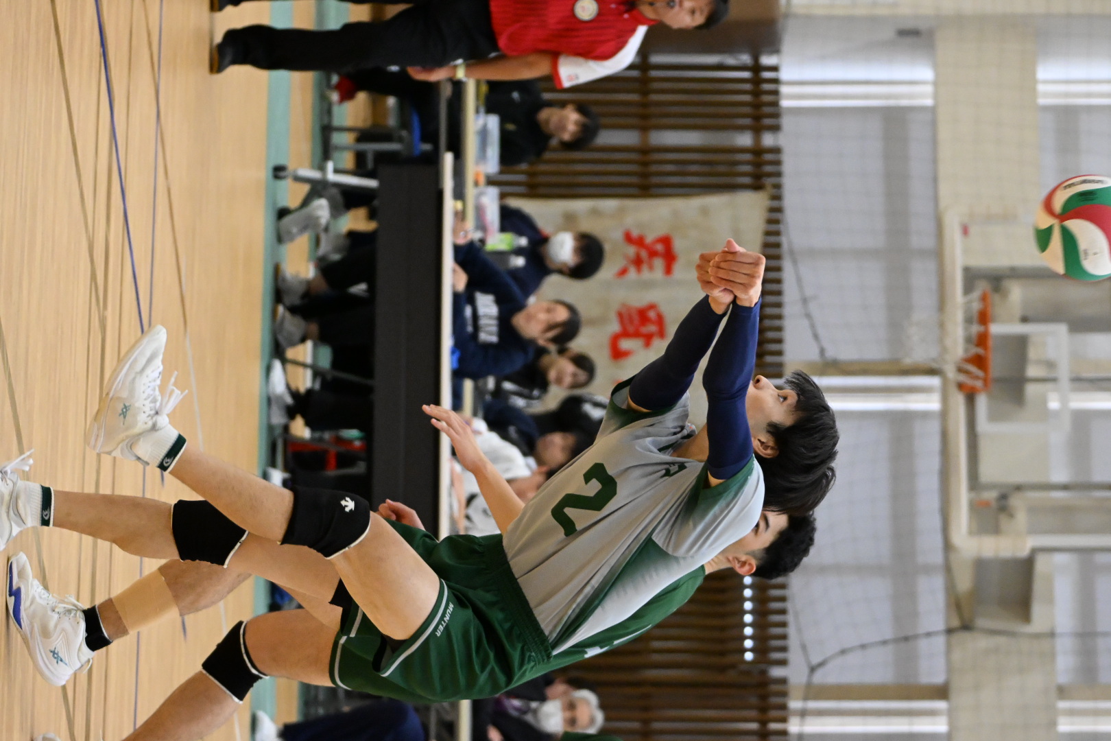 △歓声が上がるレシーブをする白野航稀
