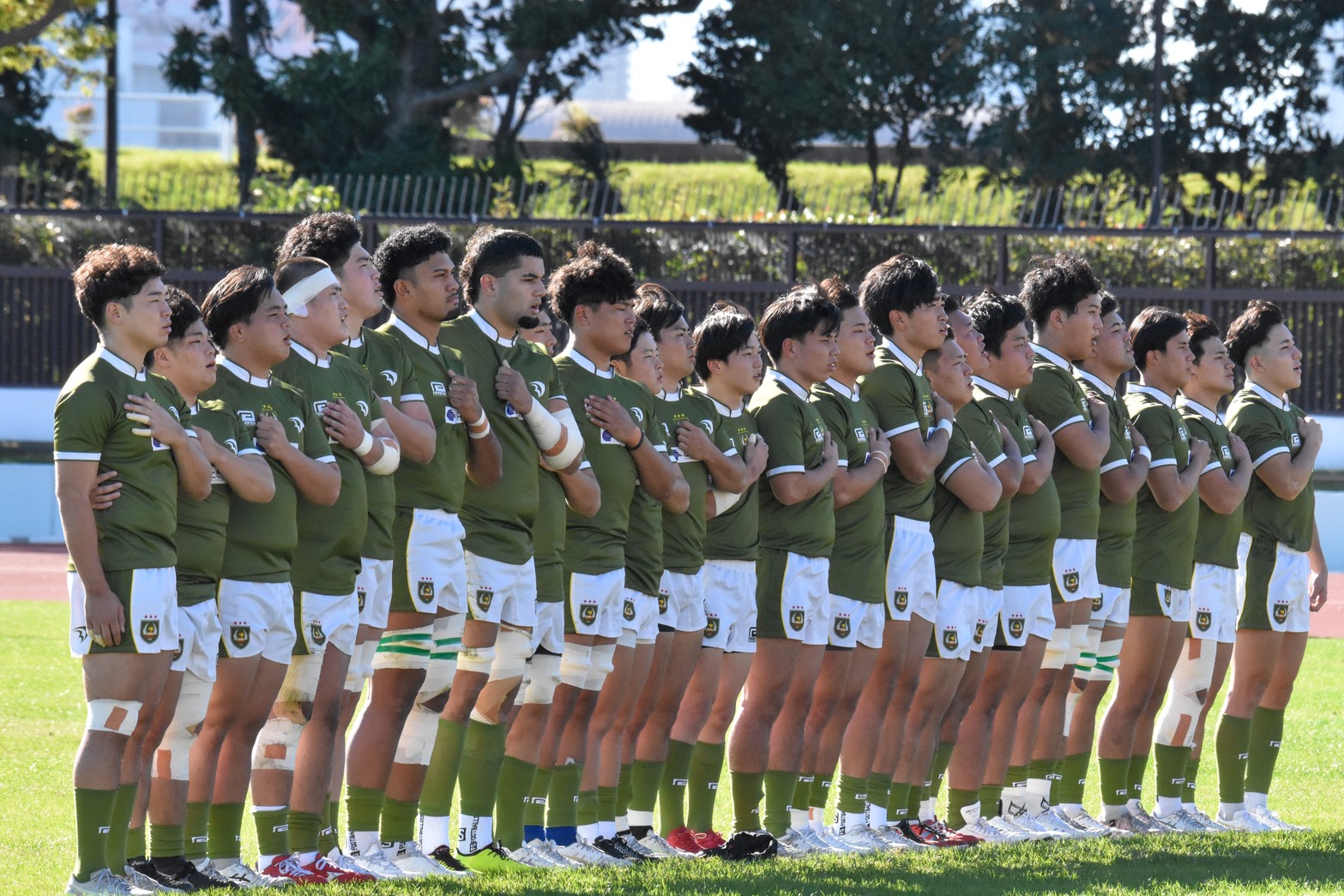 団結力を見せるモスグリーン色のユニフォーム軍団