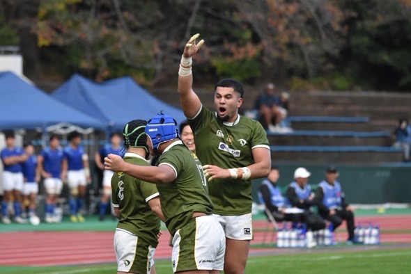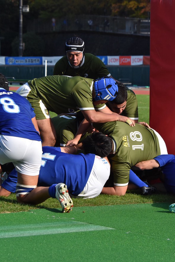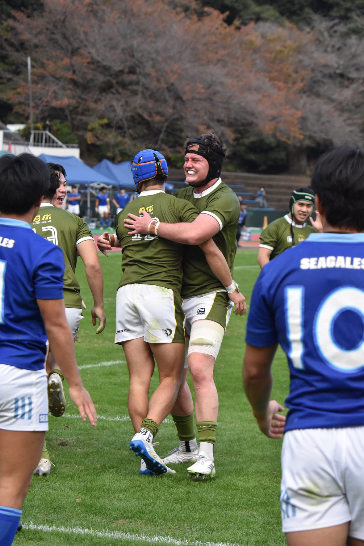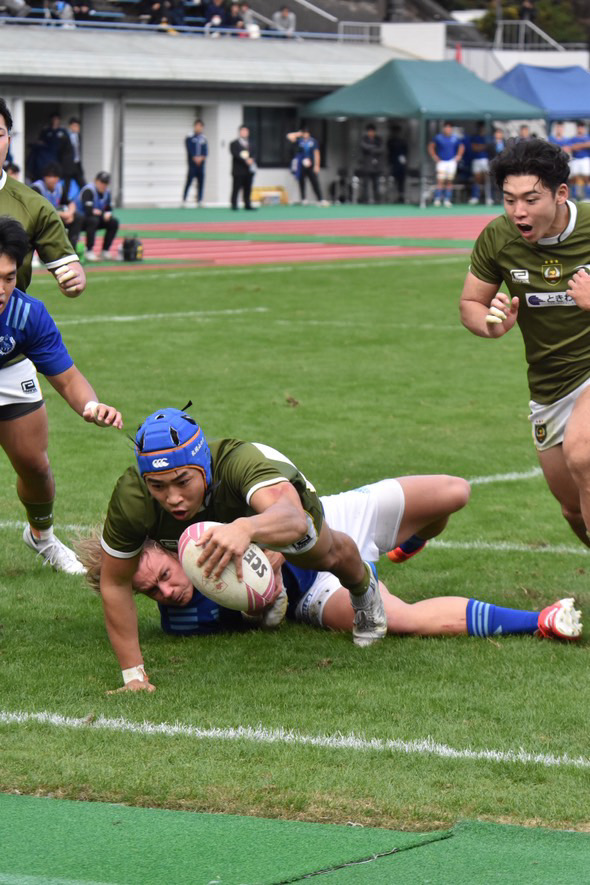 SH (スクラムハーフ)徳重隼(スポ科1=御所実業)のパスを受けとったCTB(センター)小澤匠(社経2=札幌山の手)が相手にタックルをもらいながらもインゴールに飛び込み、試合最後の1本を勝ち取る。 FBタヴァケ・オトが最後のキックを決め21-54でノーサイドとなった。