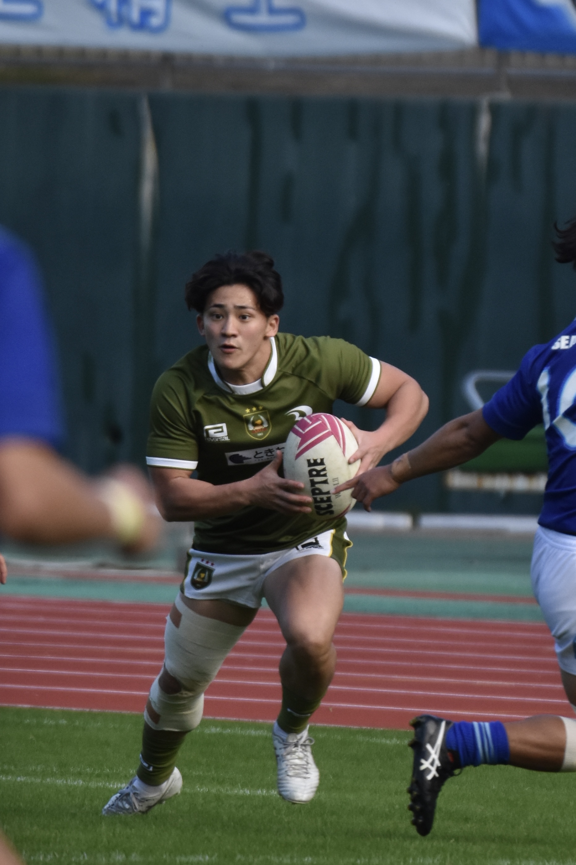 キャプテンが離脱し思うようなプレーを仕掛けられていなかった本学だったが前半33分、WTB(ウィング)山田真生(スポ科2=遠軽)が東海大のパスミスを逃さずインターセプトし、1本を返しゴールも決め7-19とする。
