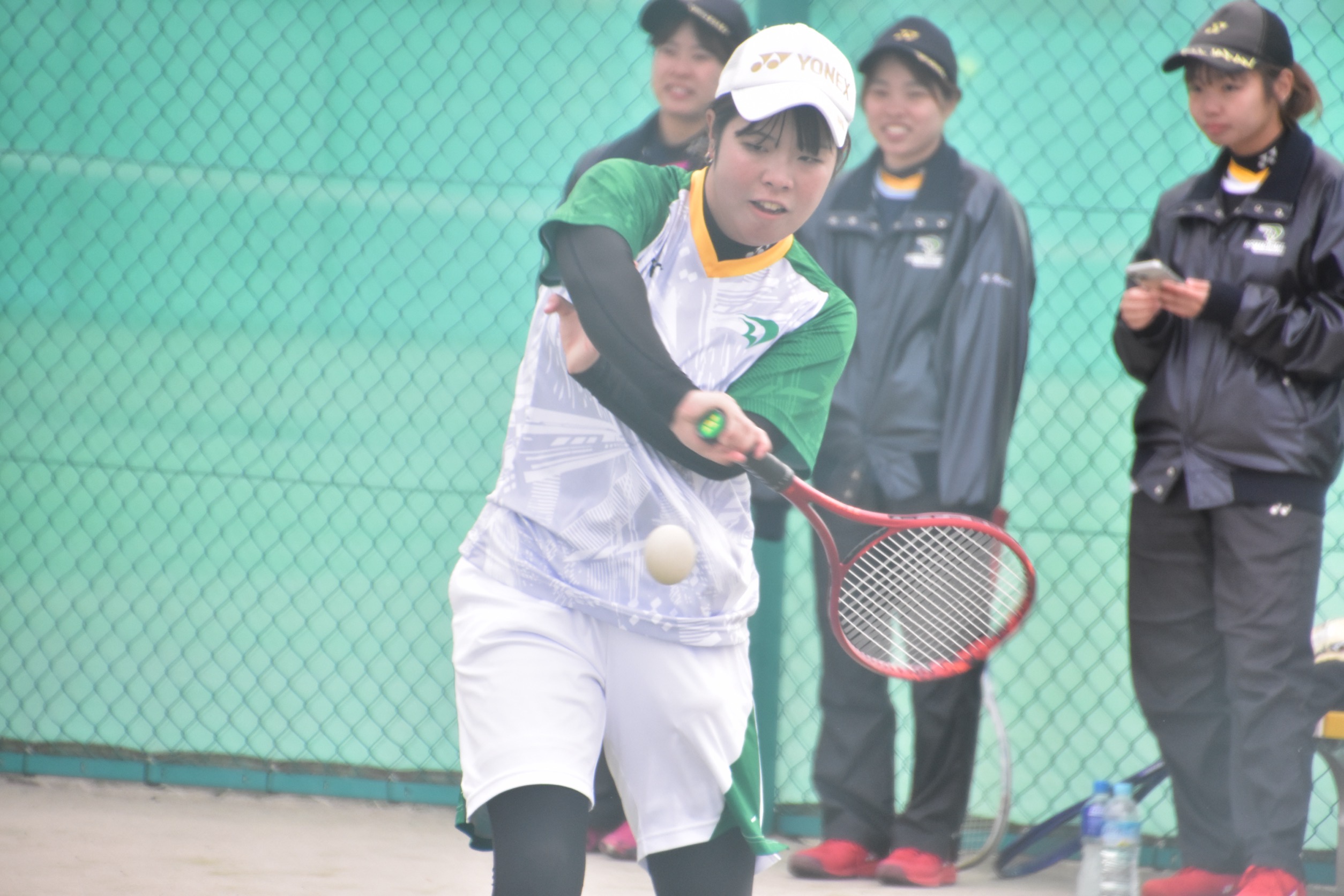 第2試合のシングルスは今季リーグ戦初出場の黒澤朋花(経営1)が出場。1年生ながら、先輩たちからも「頼りになる存在」だと評される実力者である黒澤。勝敗を分ける大一番であったが、開幕2ゲームをそれぞれ4-6で落とす。攻めたサーブ・レシーブをスライスショットで返され、直後空いたスペースを打ち込まれる展開が多かった2ゲームを、黒澤は「自分でも足があまり動いていない状態だと分かった」と振り返る。