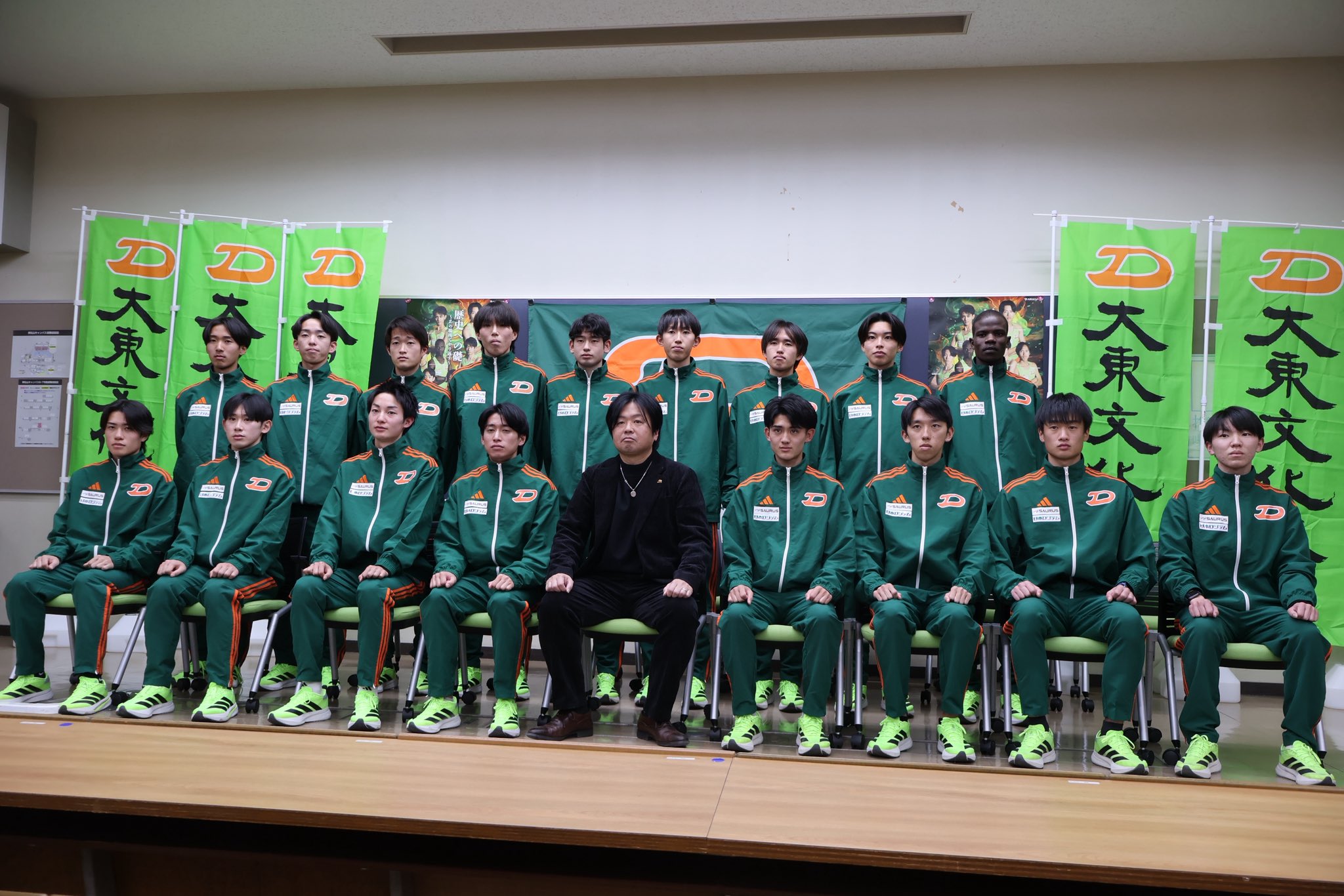第102回東京箱根間往復大学駅伝競走(箱根駅伝)で4年連続54回目の出場となる本学陸上競技部男子長距離ブロックは12月15日、大東文化大学東松山キャンパスで記者会見を行った。本記者会見には真名子圭監督、今回エントリーされた16選手が出席。主将の赤星は「今年度、歴史への礎~あの場所でやり返す~というスローガンを掲げて前回大会の悔しさを晴らし、やり返すためにこの1年間日々練習を積み重ねてきた」「エントリーメンバー16名だけでなく全ての方が一所懸命の精神で自分の役割を全うし、シード権を取りに行く」と意気込んだ。